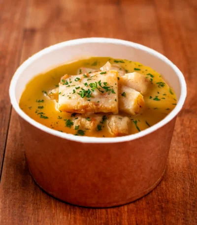 🍲 Creme de Bacalhau — sabor que abraça o paladar Um creme encorpado, cremoso e irresistivelmente aromático, preparado com lascas